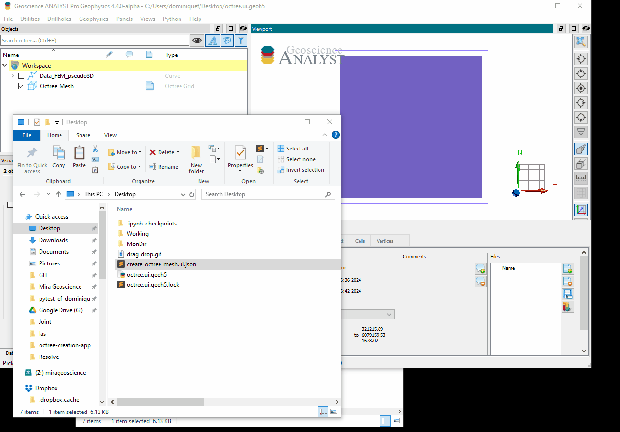 The user-interface is rendered in ANALYST Pro by one of two methods. Users can either drag-and-drop the ui.json file to the viewport: